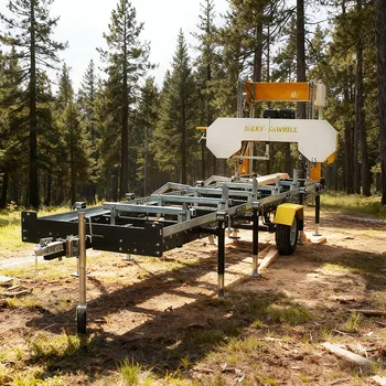 Fully Automatic Hydraulic Horizontal Band Sawmill with Gasoline Engine Wood Cutting Machine Bandsaw Mill with Trailer for Forest